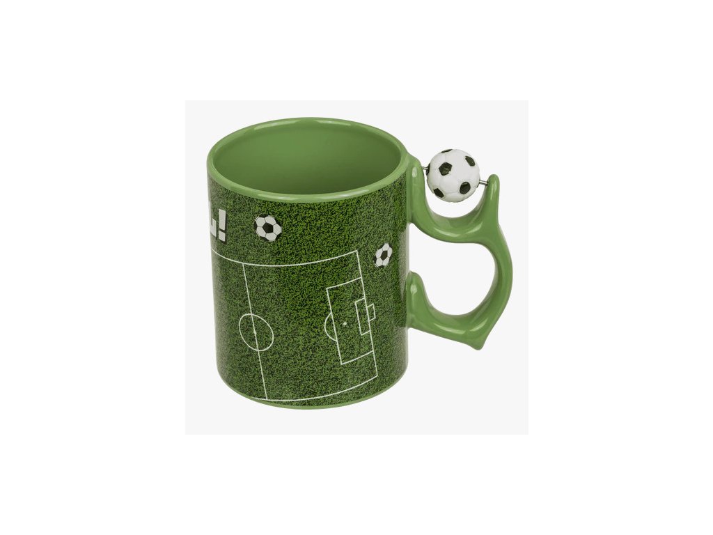 Futbalový hrnček GOOOAL! spája praktické používanie s prvkom zábavy. Na prvý pohľad klasický keramický hrnček s motívom futbalového ihriska skrýva unikátny detail – rotujúcu loptičku v ušku, ktorú môžeš počas pitia alebo práce otáčať.