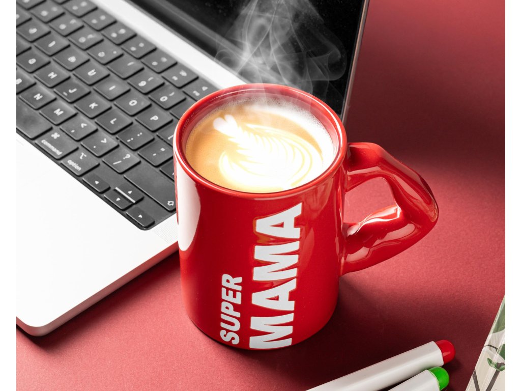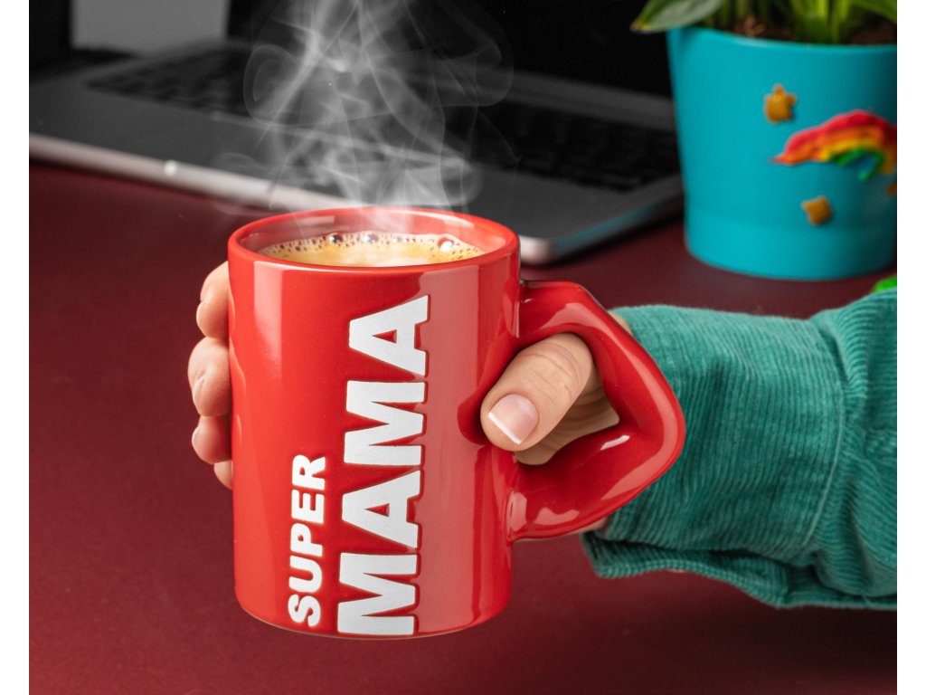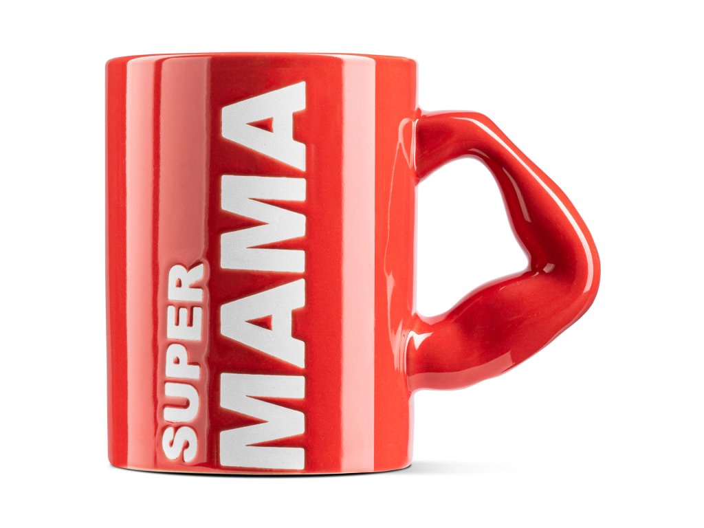 Každá mama má superschopnosti – a tento hrnček jej ich bude pripomínať pri každom dúšku. Hrnček SUPER MAMA v žiarivej červenej farbe s výraznou potlačou a unikátnou rukoväťou v tvare svalnatej ruky je vtipný, štýlový a zároveň srdečný darček.