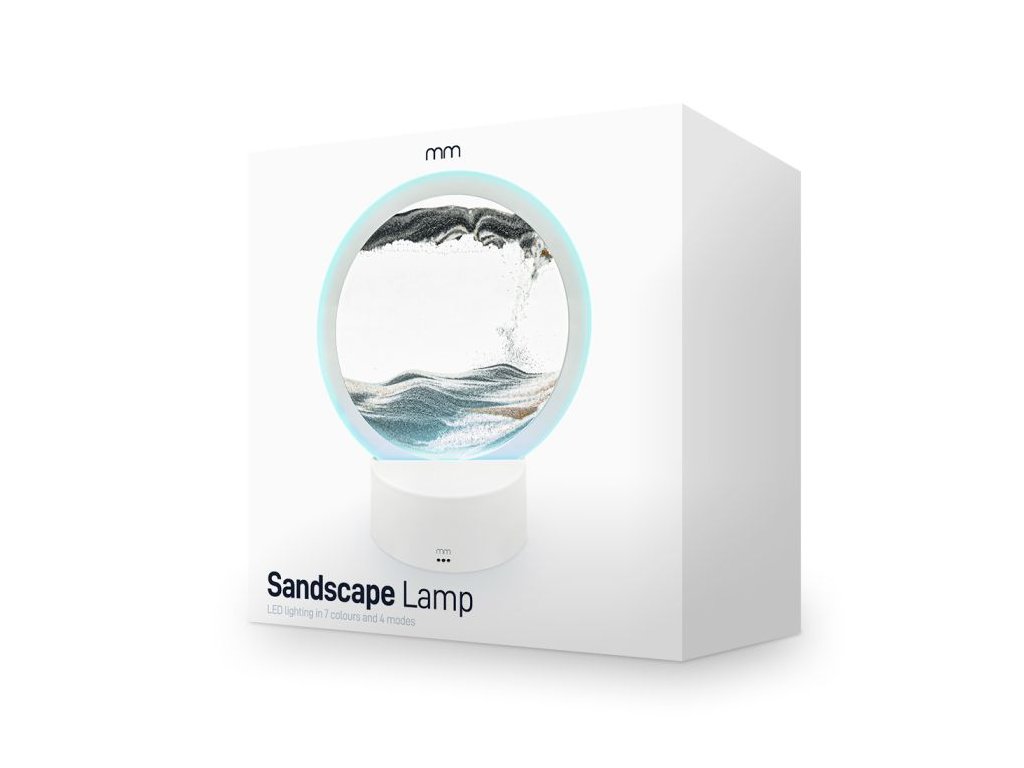 Integrované LED osvetlenie v podstavci jemne presvetlí tvary a vrstvy piesku. Vznikne tak decentné ambientné svetlo do obývačky, spálne či pracovného kútika – ideálna relaxačná lampa proti stresu aj tlmená nočná lampa.