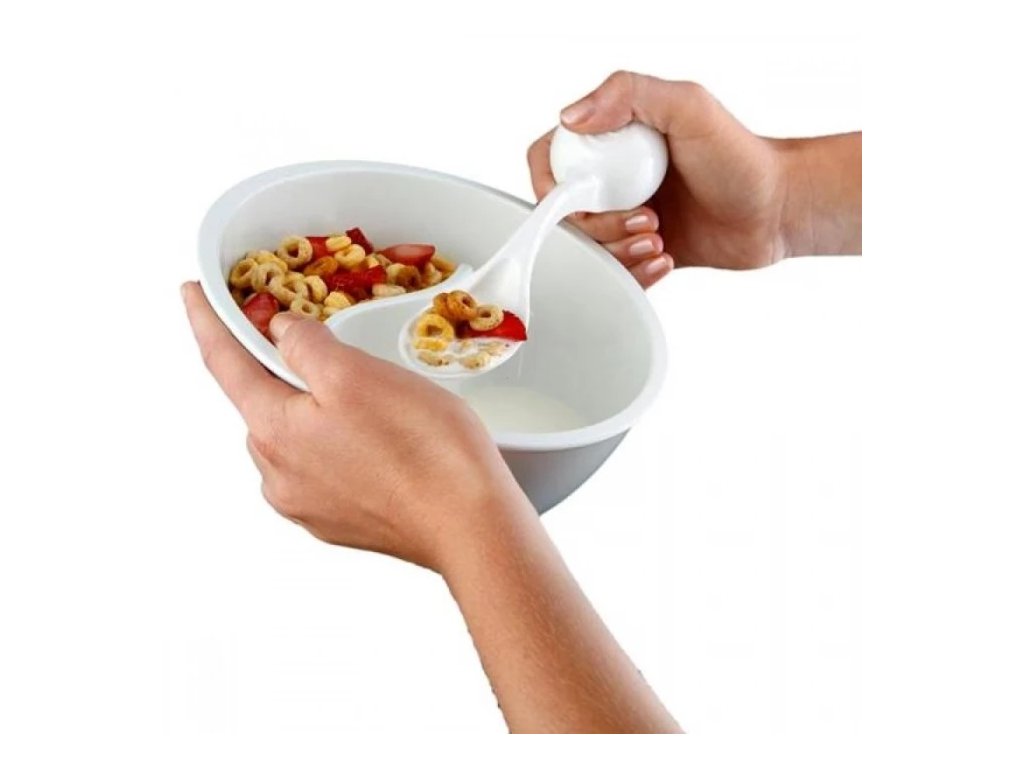 Cereálie v mlieku zvlhnú celkom rýchlo a v teplom takmer okamžite. S dvojdielnou miskou na cereálie môžete naberať cereálie a namáčať v mlieku postupne a namiesto rozmočených cereálií si stále vychutnávať chrumkavé potešenie.