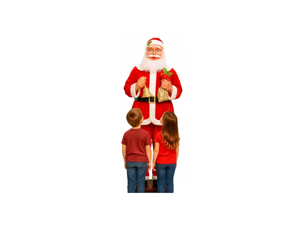 Santa sa pohybuje do rytmu vianočných melódií, má realisticky spracovaný odev, biely kožuch, tradičnú čiapku a teplý úsmev. Vďaka svojej výške pôsobí majestátne a okamžite pritiahne pozornosť – či už ho umiestnite do obývačky, vstupnej haly, hotela, kancelárie alebo výkladu.