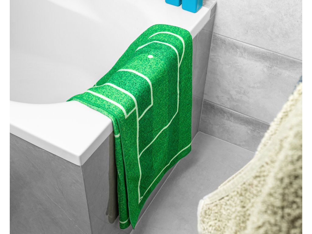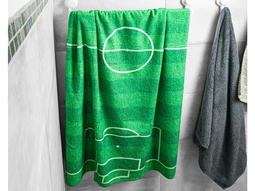 Plážová osuška pre futbalistov a fanúšikov – osuška so športovým dizajnom ihriska