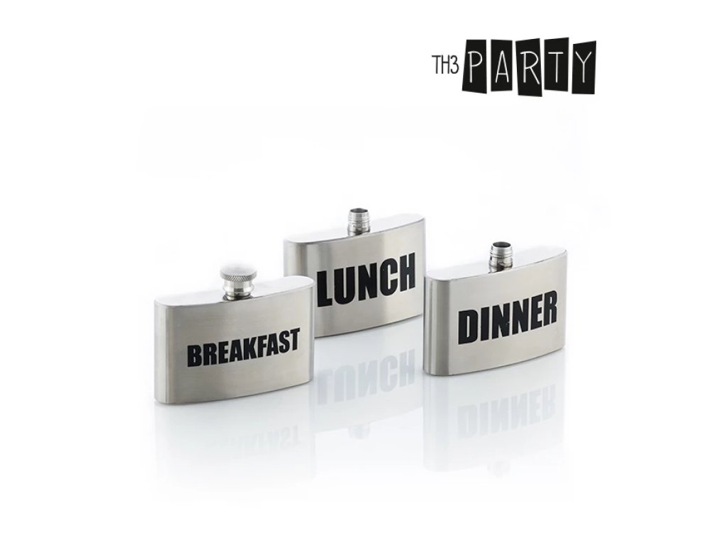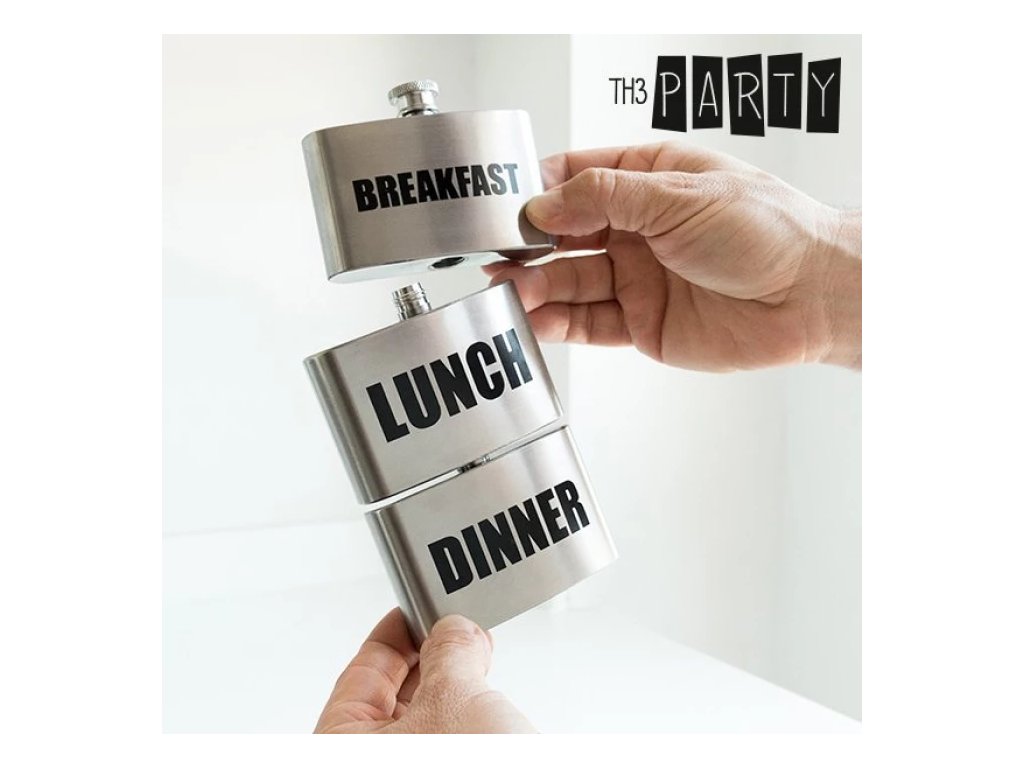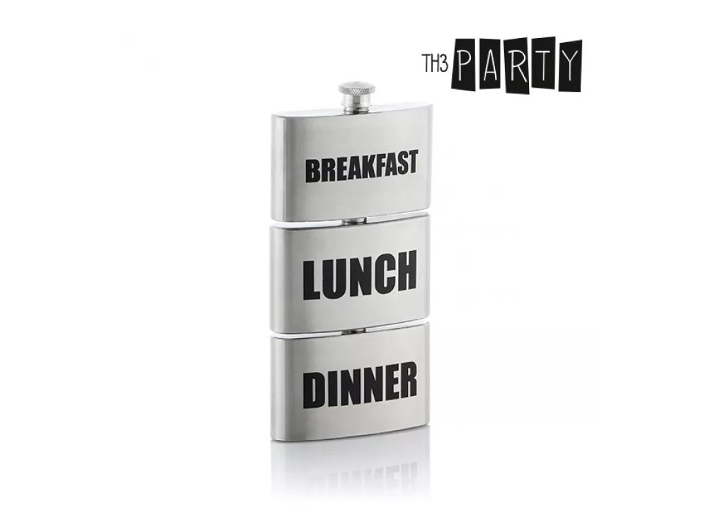 Zábavná a praktická ploskačka Breakfast Lunch Dinner rozdeľuje obsah do troch samostatných komôr, takže si viete pripraviť „mikro dávky“ na celý deň – či už na výlet, večierok alebo ako milú recesiu pre kamaráta.