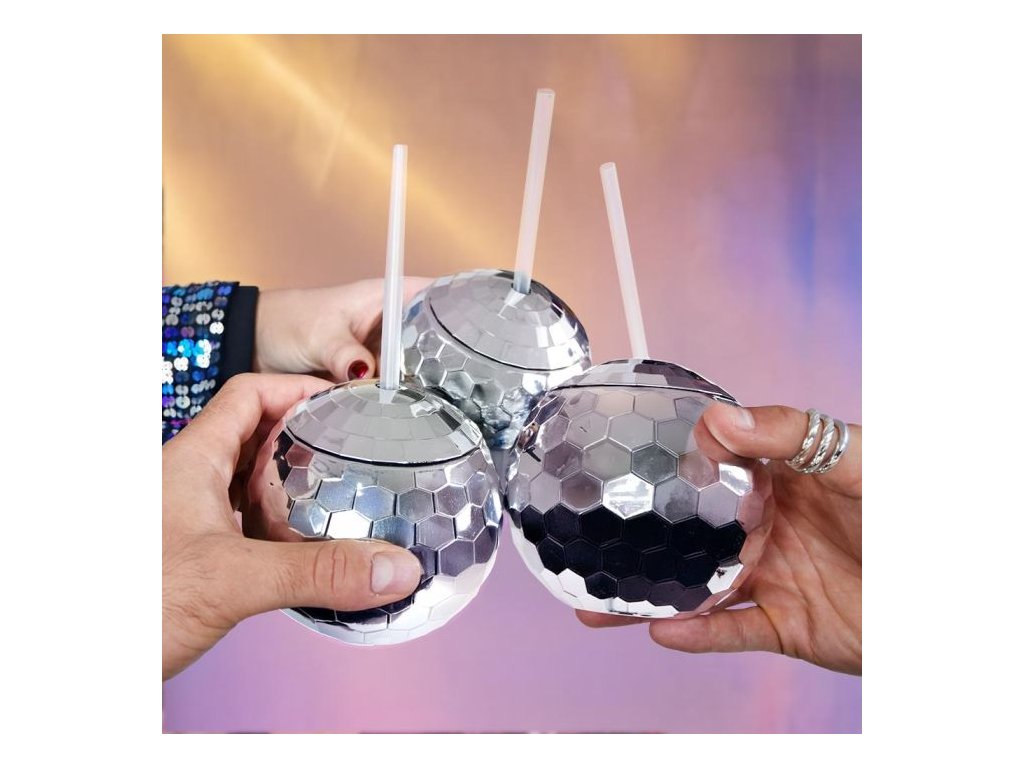Rozžiarte svoju párty alebo rodinné stretnutie týmito originálnymi pohármi v tvare disko gule! Ich lesklý, reflexný dizajn navodí retro atmosféru a určite pritiahne pozornosť všetkých hostí. Každý pohár má objem 600 ml, takže si do nich pohodlne nalejete svoj obľúbený drink, limonádu alebo koktail.