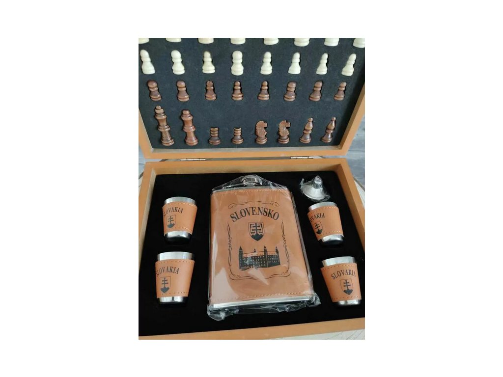 Súčasťou balenia sú 4 poháriky, lievik a šachová hra, vďaka čomu nejde len o ploskačku, ale o kompletný zážitok. Praktické, originálne a zároveň reprezentatívne balenie robí z tejto sady perfektný darček na narodeniny, meniny, Vianoce či ako pozornosť pre kamaráta alebo kolegu.