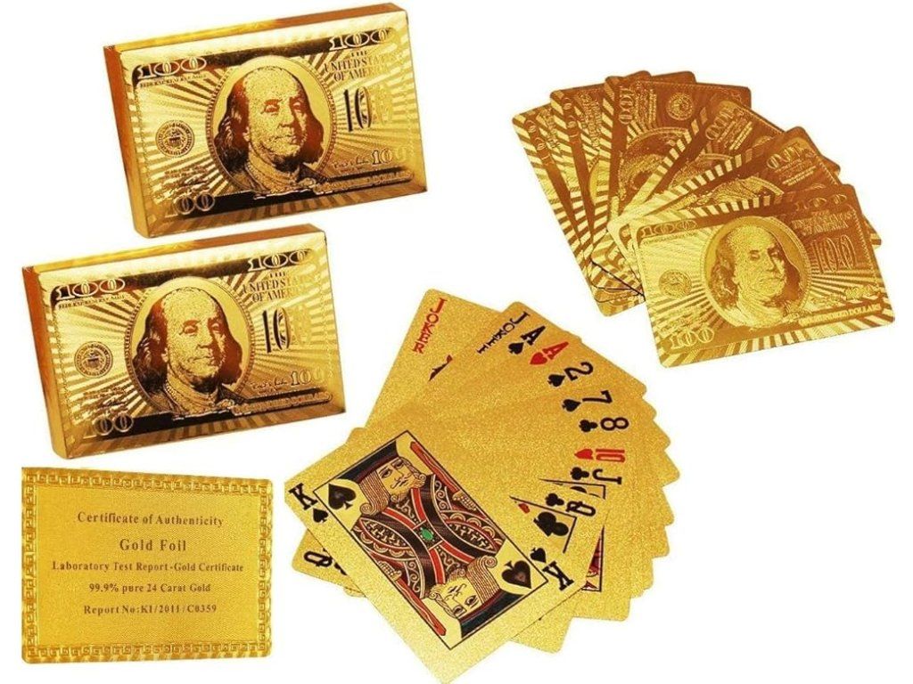 Tieto zlaté hracie karty Dolár nie sú obyčajný balíček. Sú lesklé, elegantné a okamžite pritiahnu pozornosť – či už hráš poker, žolíka alebo len chceš vytiahnuť niečo, čo zaujme každého pri stole.